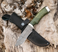 Нож Зевс из дамасской стали, рукоять - стабилизированная карельская береза, кожаный чехол в комплекте.