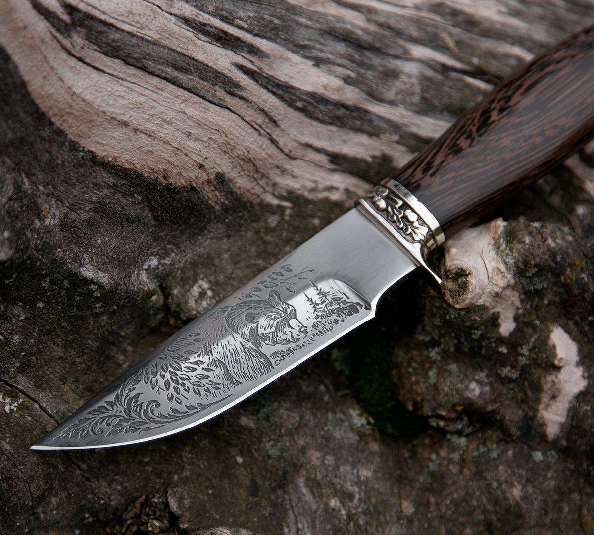 Нож Норвег из кованной нержавеющей стали 110х18 с травлением, рукоять - венге, кожаный чехол идет в комплекте.