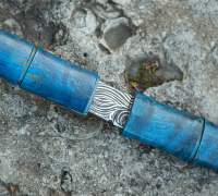Нож Танто из стали К-340 с травлением в деревянных ножнах, рукоять и ножны - стабилизированная карельская береза.
